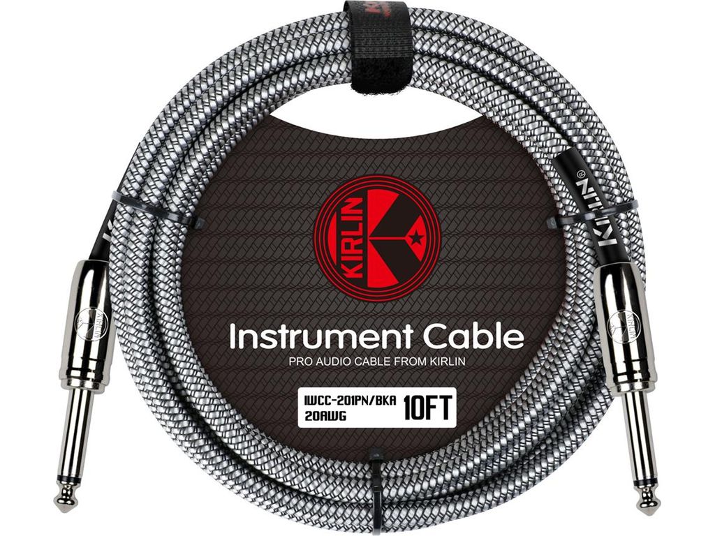 Kirlin Woven Jack to Jack Instrument Cable - 10ft - Black White Tweed